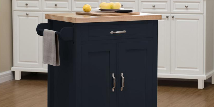 This sleek Sunjoy Alberta Kitchen Cart is designed to fit smaller kitchen spaces. Where eye candy and functionality meet, the kitchen cart is conservative in dimensions without compromising on its essential functionalities. The hand-crafted solid wood butcherblock, towel bar and additional storage space make this beauty versatile to suit your kitchen needs. The kitchen cart is easy to maintain and cleaning is a breeze.