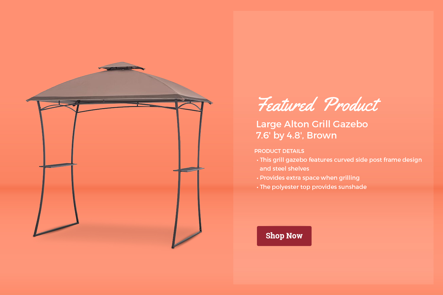 Transform your sundeck or patio into an extension of your kitchen and dining area with the Large Alton Grill Gazebo. This warm soft-top, dual-tiered grill compliments perfectly into any type of exterior décor theme you've cooked up for your space. Spend your long weekend or autumn staycations by taking out the griller and prepping for some smokin' and grillin' from underneath this vented canopied tent house.