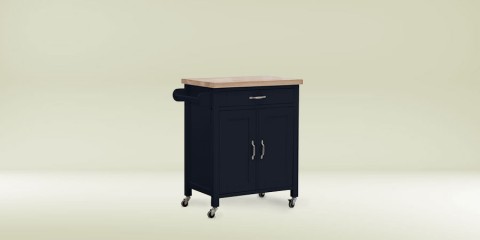 This sleek Sunjoy Alberta Kitchen Cart is designed to fit smaller kitchen spaces. Where eye candy and functionality meet, the kitchen cart is conservative in dimensions without compromising on its essential functionalities. The hand-crafted solid wood butcherblock, towel bar and additional storage space make this beauty versatile to suit your kitchen needs. The kitchen cart is easy to maintain and cleaning is a breeze.